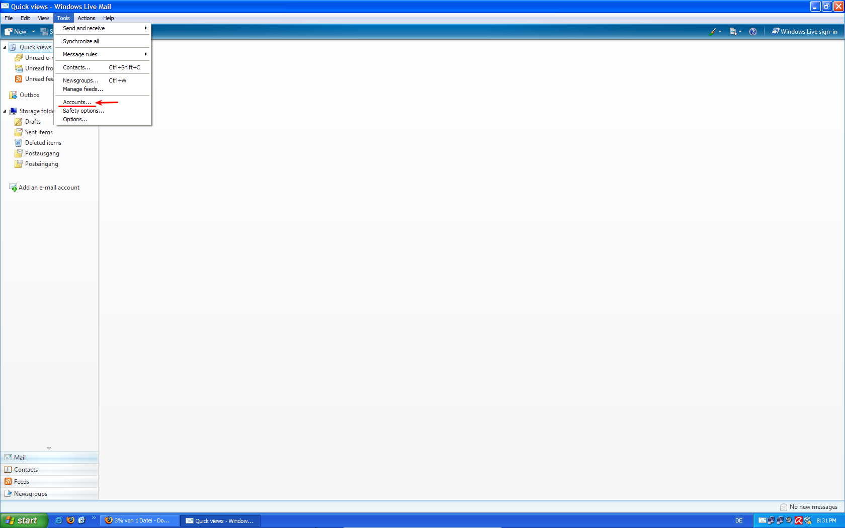 1. ჩამოხსენით მენიუ Tools და აირჩიეთ ოპცია Accounts.