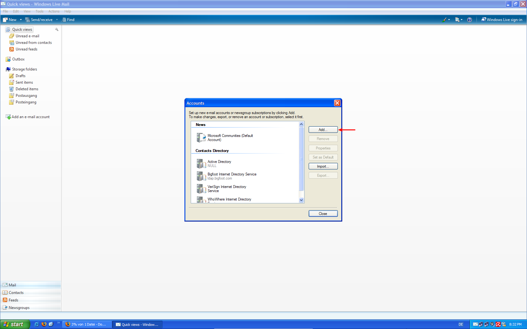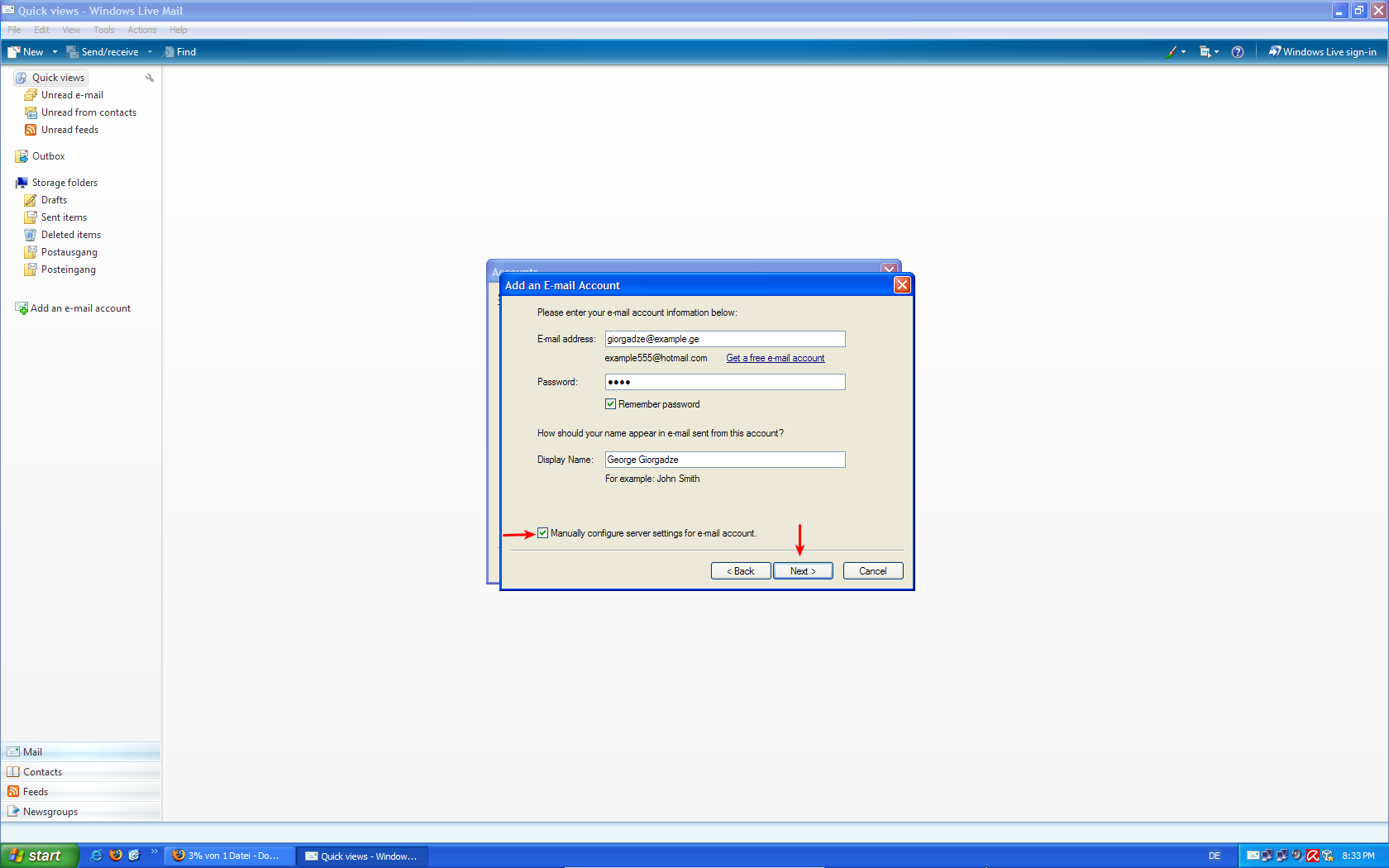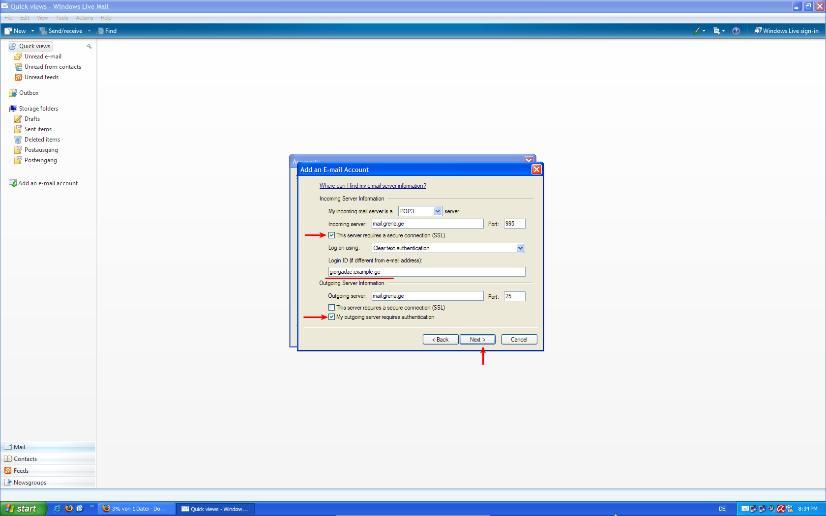 Windows Live Mail-ის კონფიგურაციის ინსტრუქცია